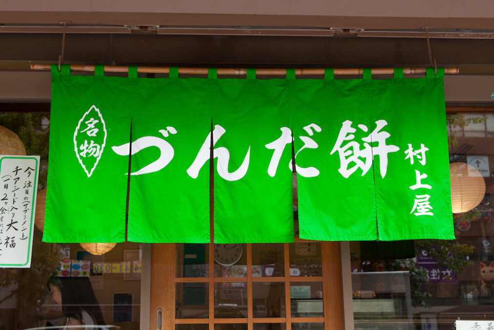 店ののれんにも大きく書かれている「づんだ餅」632円が一番人気の看板メニュー。親子二代、三代で通う人も多く、時代を超えて愛されている味なのです。