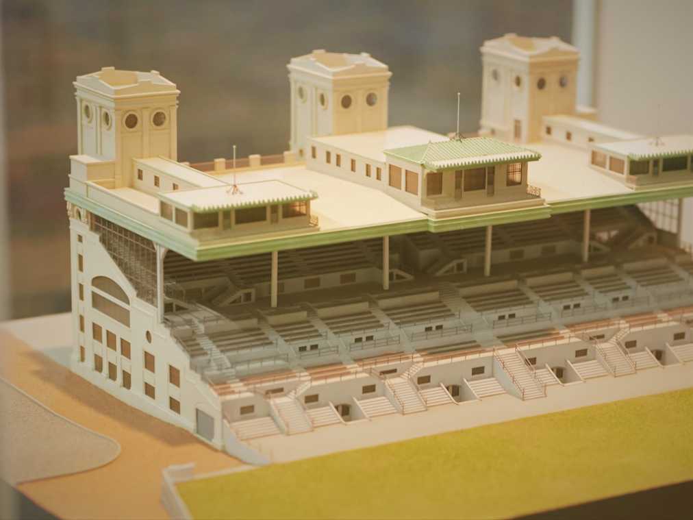 館内には根岸競馬場一等馬見所を南側正面からみた立体模型も!スタンドの中には、豪華な貴賓室やレストランもあったそうです。