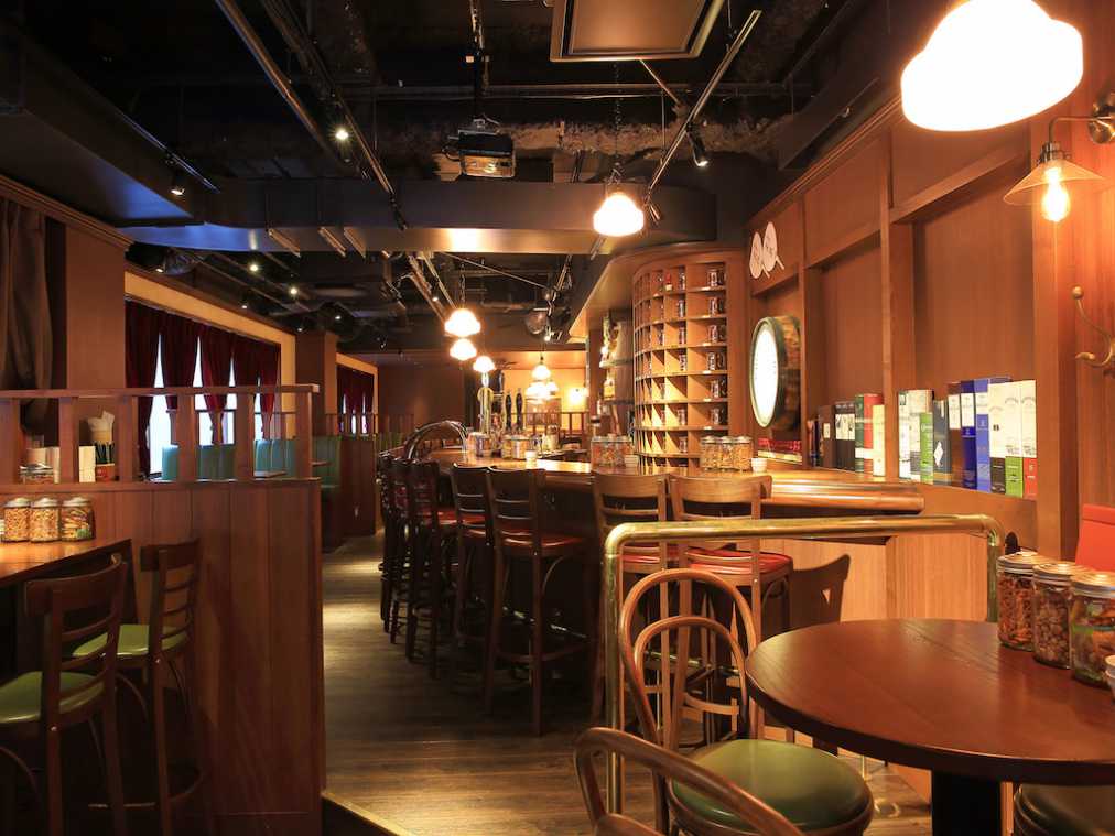 「ハイボールバー京都烏丸1923」は、重厚なカウンターを中心に、レトロなソファー席などもありノスタルジックな雰囲気。