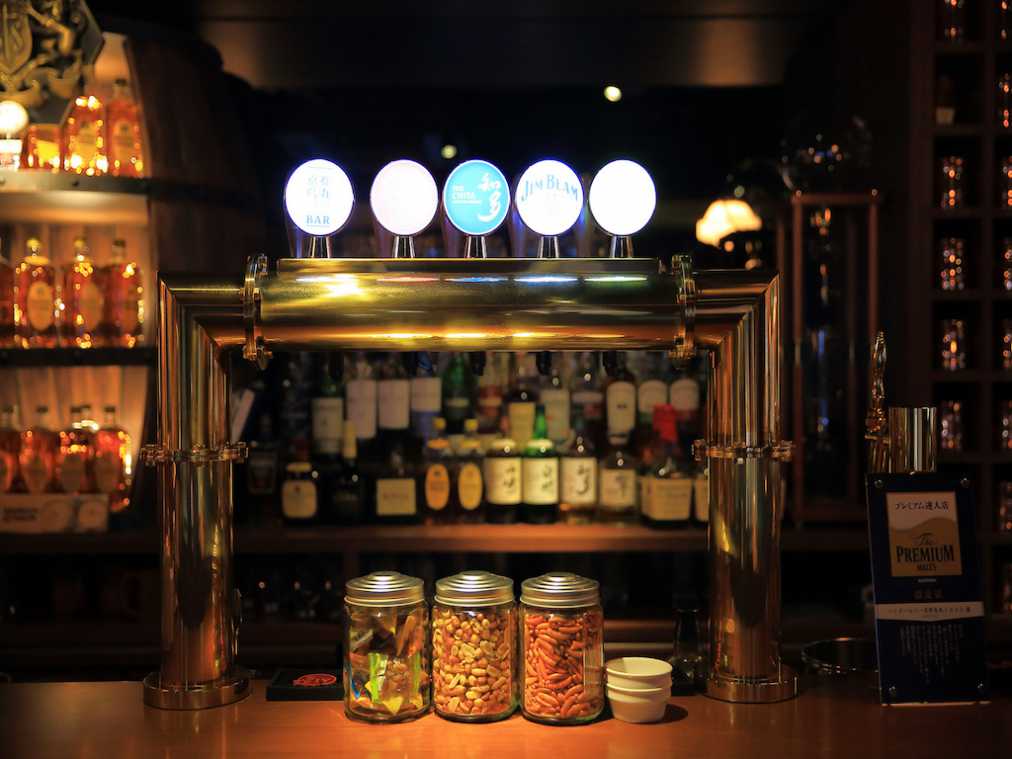 ハイボールをおいしく作る条件は「水、氷、炭酸」をいかにこだわり抜くか。「ハイボールバー京都烏丸1923」では、水は鳥取県奥大山の天然水を、マイナス15℃で一晩おいた氷は、水で表面をなめらかにしてから使用。炭酸は写真の専用ハイボールタワーで、業界最高のガス圧で抽出します。