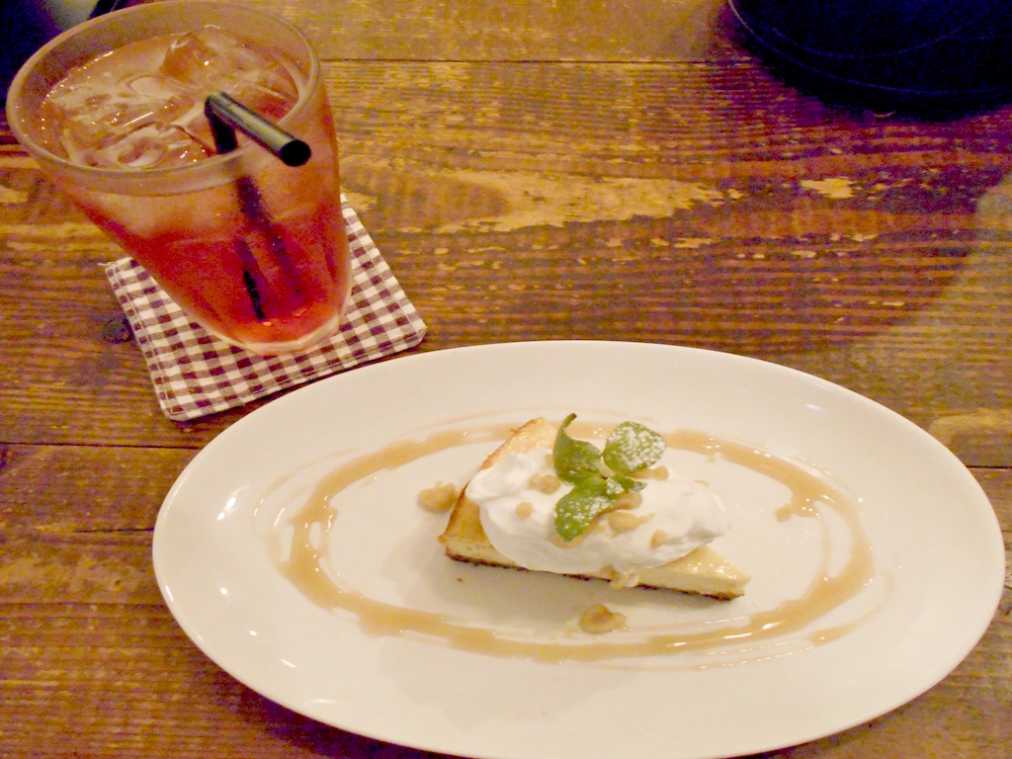 ハンモックの座り心地を満喫しながら、「hammock cafe +galley mahikamano」の自家製スイーツを堪能。数あるスイーツメニューの中でも人気なのが、オリジナルの「バナナチーズケーキ」(600円)です。バナナとクリームチーズをたっぷり使った濃厚なチーズケーキで、サクサクとした土台の生地はココア味。