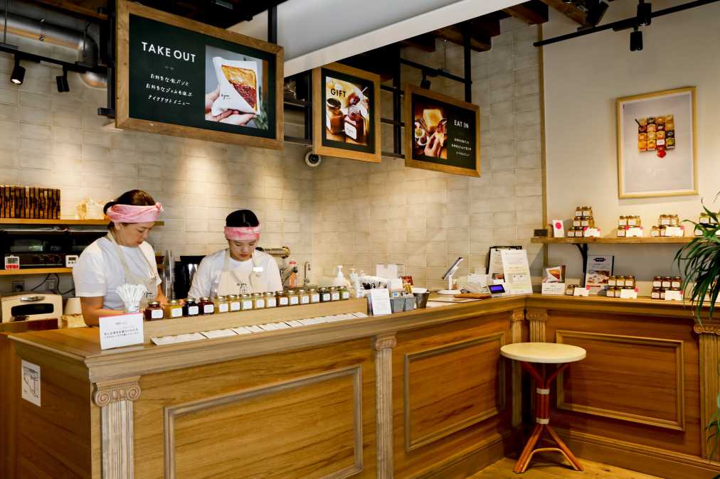 併設のカフェスペースでは、卵とミルクを使わずに作られた「極美“ナチュラル”」やリッチな風味の「極生“ミルクバター”」など、「高級食パン専門店 嵜本」を代表する食パンをジャムと一緒に味わうことができます。