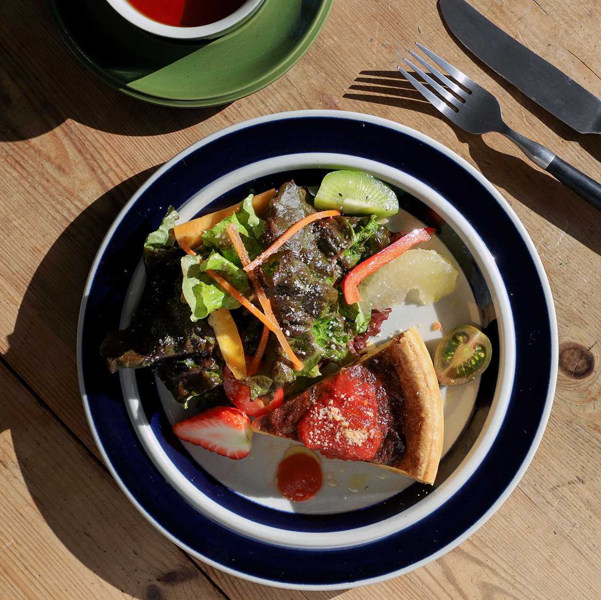 11~14時のランチタイムにも登場する「特製キッシュ サラダ添え」。キッシュの中身は日替わりで、この日は大好きなベーコン入り。ほんのりとした甘さと香ばしさがやみつきになり、「おかわり!」と言ってしまいそうな自分がいました。