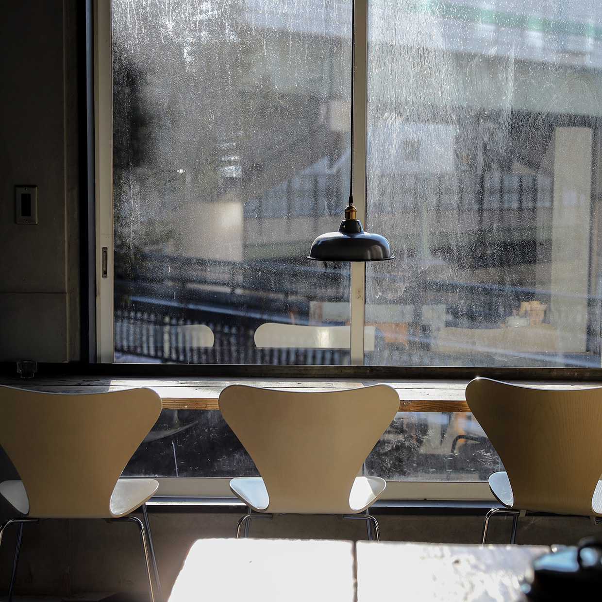 2階の窓際カウンターは、一人でぼーっとしたいときにもぴったりで、運がよければ、店先でくつろぐ猫と会えるかも。