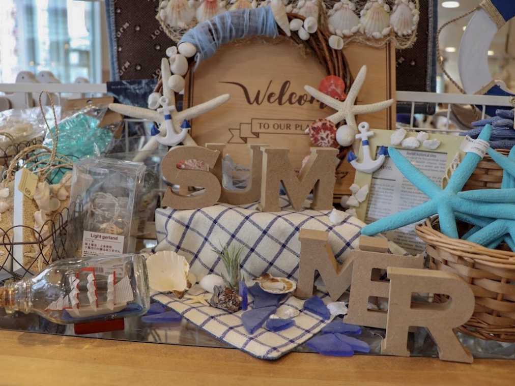 お店に入ってすぐのところに、広くスペースをとって展開されているのが、ヨーロッパの港町・BASQUE(バスク)をテーマにした“マリンテイスト雑貨”です。どれも手ごろな値段で、ラックからオーナメントまでアイテム数も豊富なので、夏に向けてお部屋を一気にイメチェンすることができます!