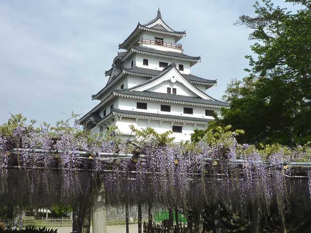 唐津湾に面した唐津城は、天守閣を鶴の頭に見立て、左右に広がる松原が翼を広げた鶴のように見えることから、別名舞鶴城ともいわれます。城周辺の舞鶴公園は、桜や藤の花の名所としても有名で、夜にはライトアップされた美しい姿が披露されます。