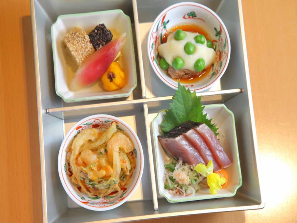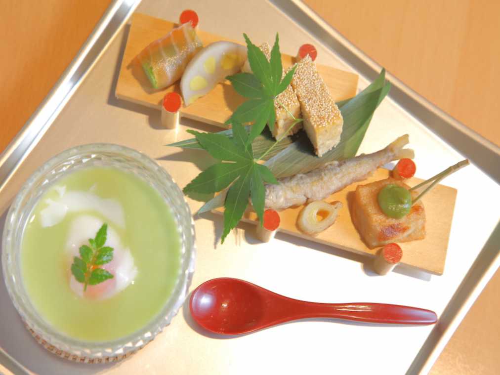 メニューは月替わりで、夏はアユやハモ、秋はもみじ鯛やカマスなどが並ぶことも。