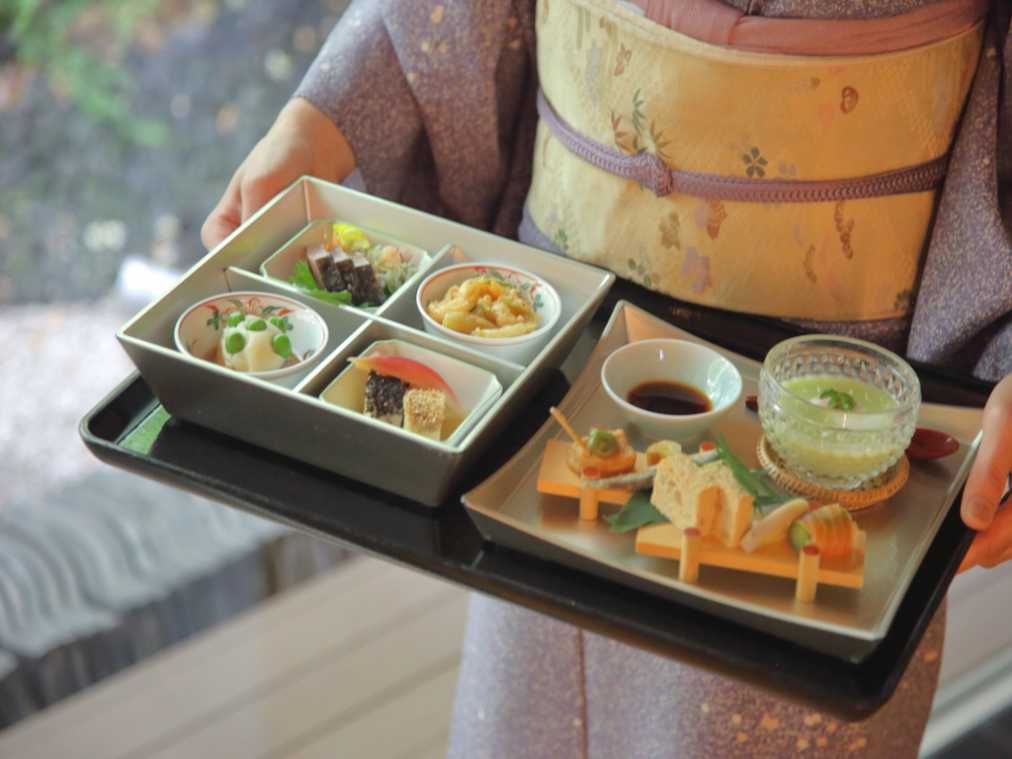 着物姿のスタッフがテーブルまで料理を運んできてくれます。しっとりと上品な雰囲気もステキですよね。