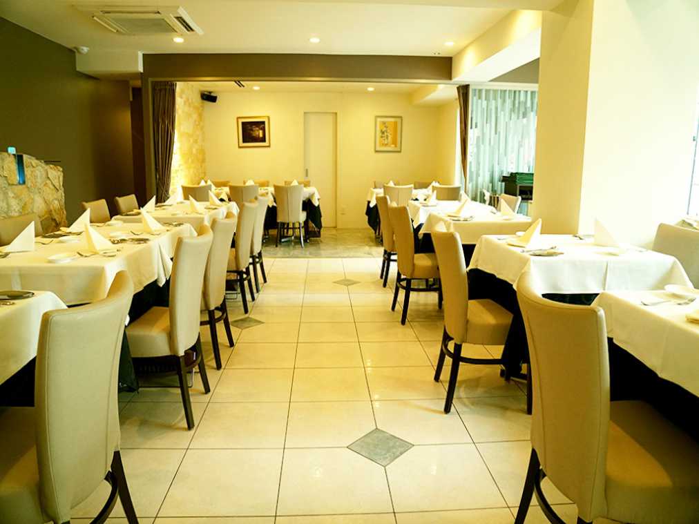こちらがテラス席。夜風に吹かれながら、開放感のあるディナーが楽しめます。ガラス戸も設置されているので、冷暖房を入れることもできます。