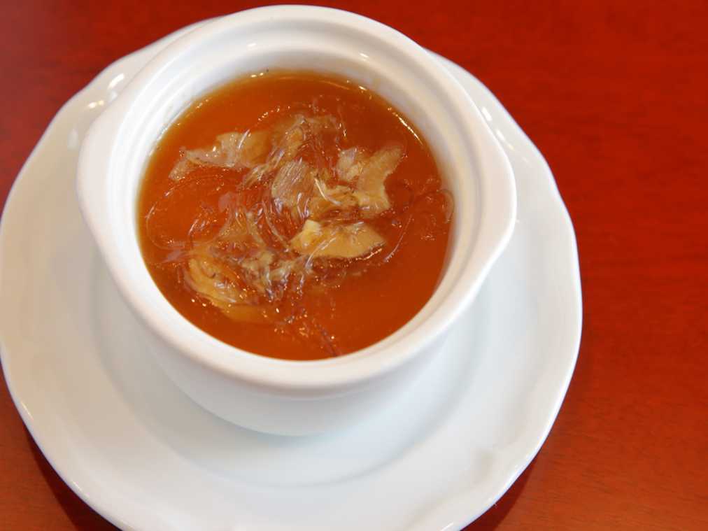 こちらは、濃厚な白湯スープで煮込んだフカヒレがたっぷり入った「フカヒレ入り茶碗蒸しスープ仕立て」。コクのあるスープと、優しい味わいの茶碗蒸しがベストマッチ!