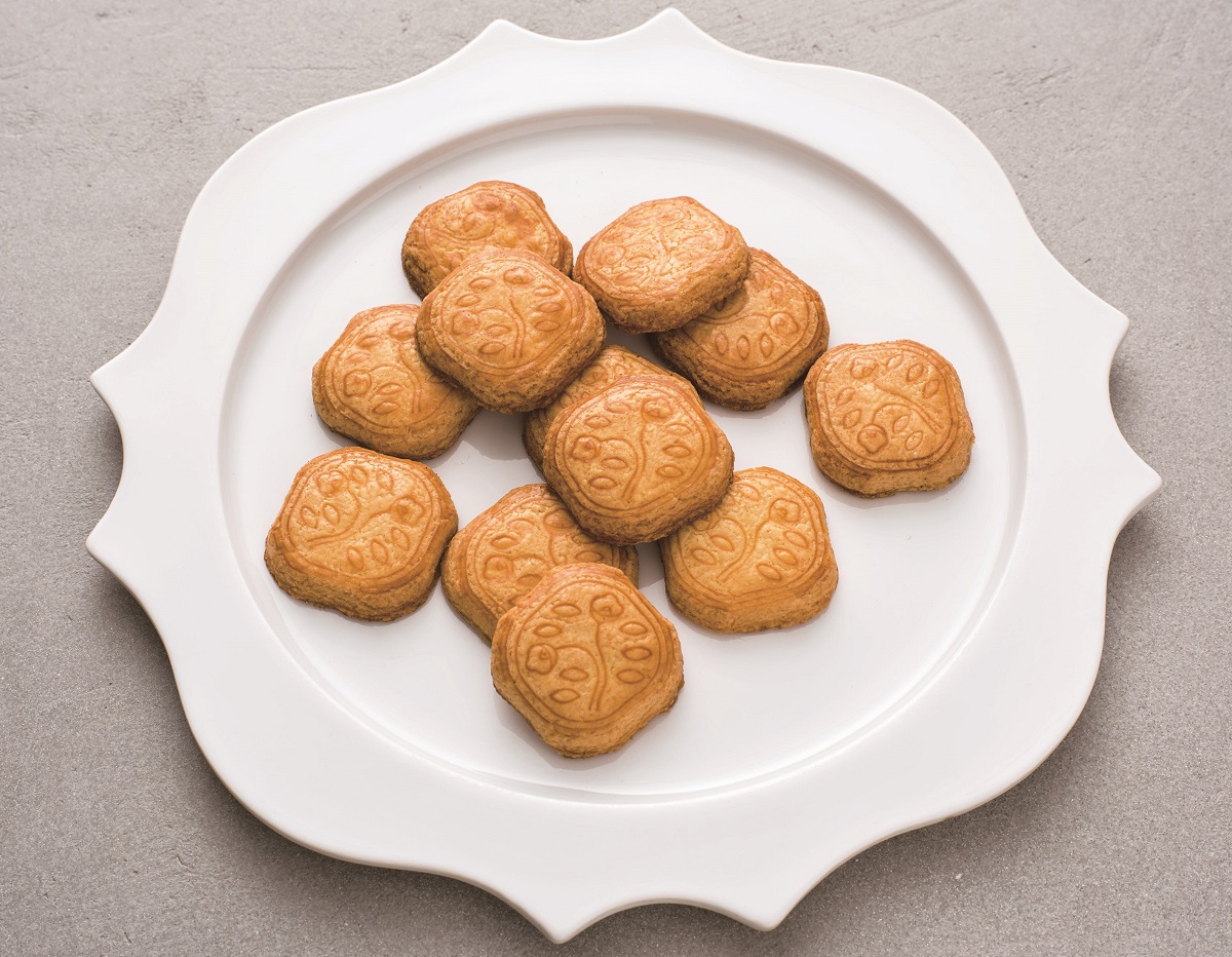 「資生堂パーラー」にはほかにも、王道ながらもこだわりとエッジが効いたお菓子がたくさんあります。こちらは昭和初期から愛され続けてきた、定番の「花椿ビスケット」(24枚入1809円〜)。資生堂のシンボルマーク“花椿”の模様がとってもキュートなビスケットは、老若男女問わず喜ばれるお菓子です。