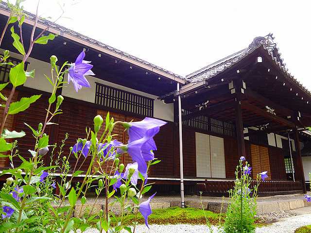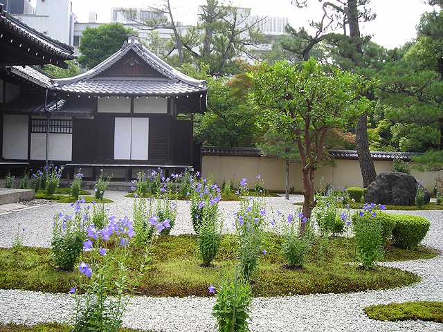 廬山寺は、紫支式部が「源氏物語」を執筆した邸宅跡として知られます。本堂の南側に位置する源氏庭は、たおやかな風情の枯山水で、6月から9月には紫式部にちなんで紫の桔梗が植えられ、静かな美しさを讃えています。2月に行われる節分行事「鬼法楽(おにほうらく)」でも有名です。