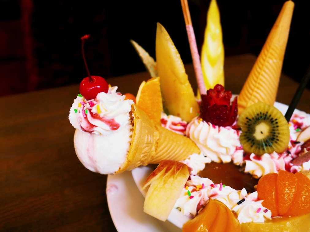 縦にも横にも広がるパフェ、崩れないように気をつけながらいただきましょう。甘さ控えめの生クリームやアイスクリームに、フルーツの自然な甘みがマッチ!こってりとした甘さではないので、見た目以上に食べやすいですよ。たっぷり盛られたスイーツに、身も心もいっぱいになります。