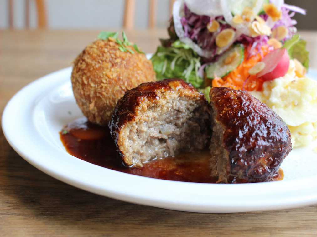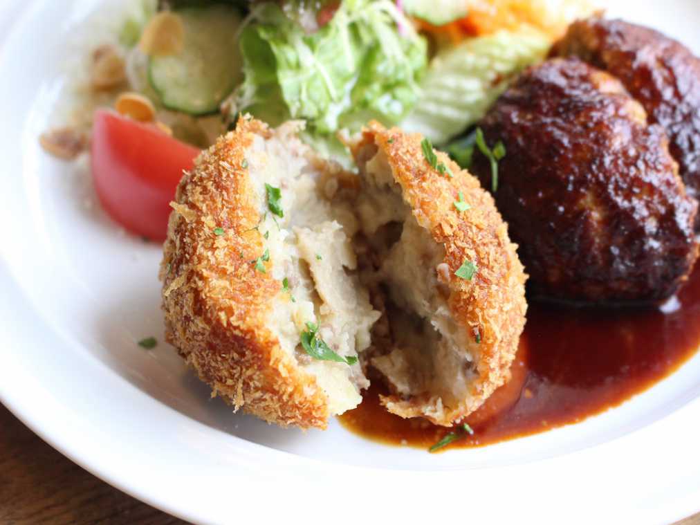 写真に撮りたくなる、まんまるコロッケとハンバーグ