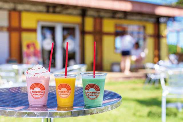 緑がまぶしい開放的なガーデンで、ベストシートに腰かけてスムージータイム。自然の甘さを生かした体に優しいスムージーは常時20種類以上。ドライブのお供にもひんやり冷えたスムージーはオススメです。併設する南国雑貨ショップもチェックしてみましょう。