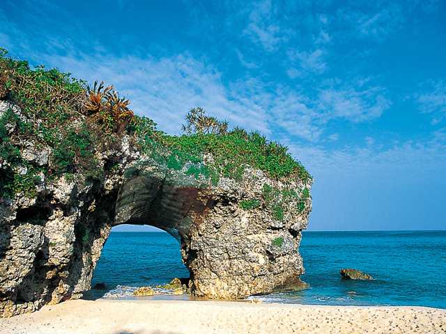 宮古島の最東端にある、全長約2㎞の細長い岬。日本有数の景勝地で、突端にある灯台までは歩いて向かいます。見渡す限りの青い海、青い空、白い雲・・・。岬は濃い緑に覆われて、その美しいコントラストは言葉にならない美しさです。静かな中に潮騒の音だけが響き、時間が経つのを忘れてしまいます。