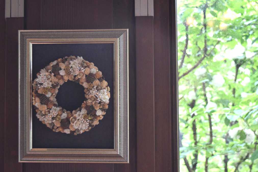 壁のリースもエレガントなヨーロッパの雰囲気。ムード満点の店内も素敵ですが、気候が良い時季はテラス席でコンサートの感想を語り合うのもいいですね。