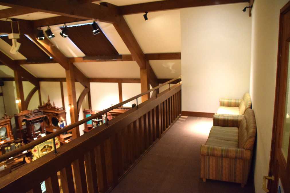 あまり知られていませんが、3階にあるロフト展示室奥のバルコニーは特等席。2人でソファーに座って、階下のホールで繰り広げられる魅惑的なコンサートを楽しめます。