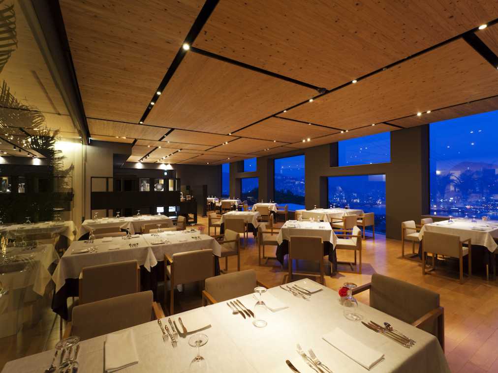 レストランの大きな窓からは、昼間は爽快な長崎港の風景が望め、夕刻になると時間と共に色合いを変えていく、それはまるで映画のワンシーンのよう。稲佐山の中腹にあるので、頂上の展望台から見るより風景が近く感じられます。