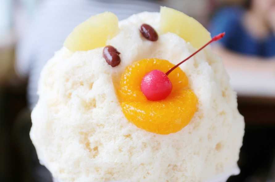 まん丸なお顔につぶらな瞳がとてもキュート。メニュー名は白熊ですが、トイプードルやヒヨコにも見えるような…。お店の方に聞いてみると、「目(豆)の位置や眉毛(パイナップル)の向き、口(みかん)の形は、作るたびに変えています。その方が楽しいでしょ?」とのこと。毎回異なる表情を楽しみに訪れる人も多いそうです。