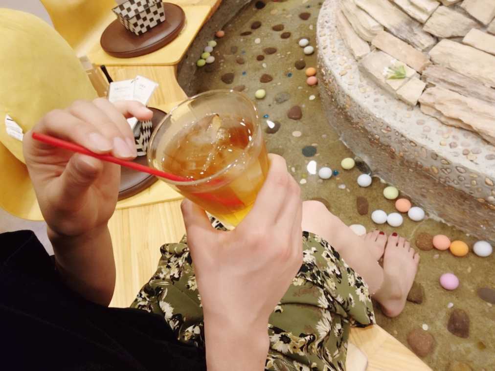 夏に足湯カフェなんて暑いんじゃ…と思いながらも、チャプンと足を入れてみると、ちょうどよい温度。「あ〜気持ちいい〜」と思わず声に出してしまうくらいの心地よさです。