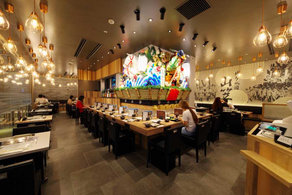 人形師が丹精込めて制作した本物志向の作品で、飾り山と一体化しているカウンター席は「山笠」の迫力を感じることができます。思わず「オッショイ!(山笠の掛け声)」と叫んでしまいそう。