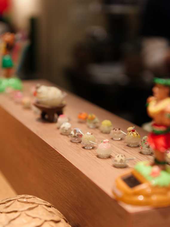 カウンター上にふと目をやると、かき氷のミニチュア食品サンプルがずらり。モノづくり