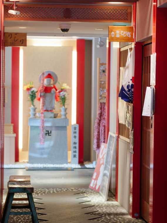 「氷屋ぴぃす」があるのは、JR吉祥寺駅から徒歩5分ほどの場所に位置する「吉祥寺じぞうビル」というなんともユニークな名前の建物の1階。鮮やかな赤と白を基調とした外観は、洗練された雰囲気を漂わせながらも、どこか懐かしさを感じさせます。