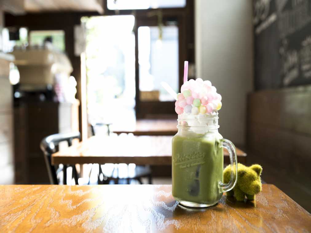 落ち着いていておしゃれな雰囲気の店内でいただける、見た目にもかわいい「おいりドリンク」や「ねこっぺ」。おいりドリンクはテイクアウトして公園に持って行くのもおすすめです!