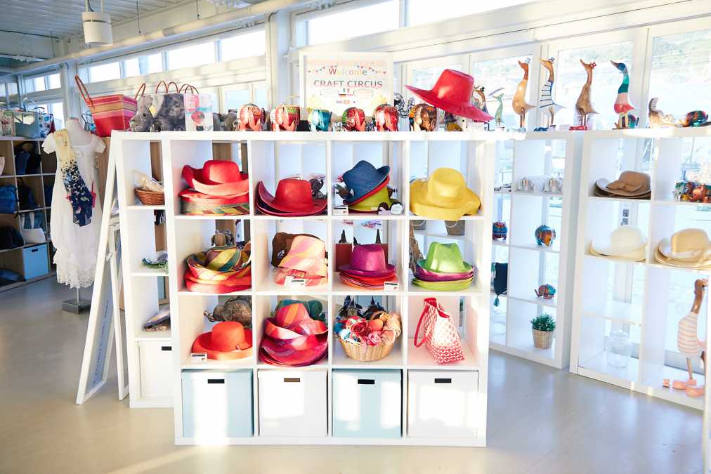 1階には島内外のハンドメイド作家の作品を展示・販売する「1坪ショップ」も併設。各スペースにはこだわりの手作りアイテムが並んでいます。