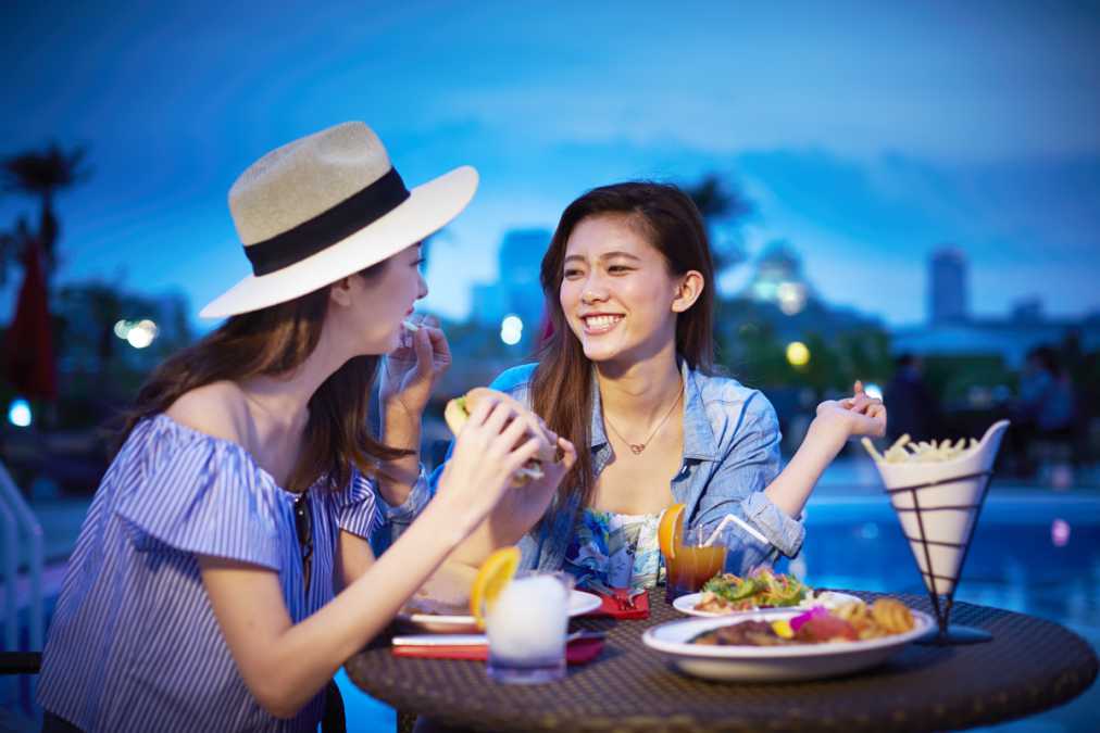 泳ぎ疲れたら、水着のまま気軽に利用できるプールサイドレストラン「LAGOON(ラグーン)」へ。 “食”にこだわり続けるニューオータニの味を楽しめます。