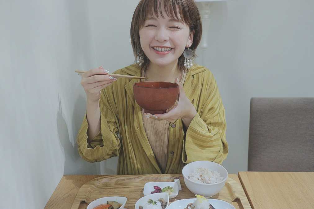 シンプルな内装が落ち着く、オーガニックカフェに到着。さいきん寝不足が続いていたので、栄養バランスのいい和定食をチョイスしました。具材たっぷりの温かいお味噌汁、最高ですよね。