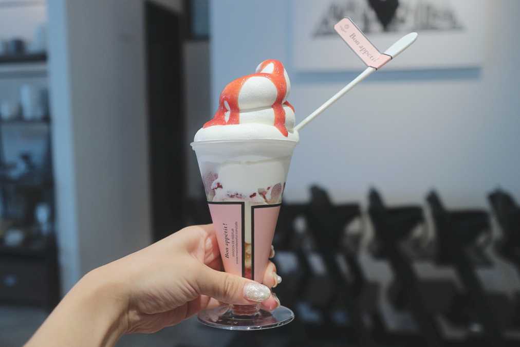 おさんぽの最後はつい、カフェで甘いものが食べたくなっちゃう。ということで今回は、見た目も味わいも甘〜い!苺パフェをいただきました。濃厚なミルクアイスとジューシーな苺が口の中でとろけます。