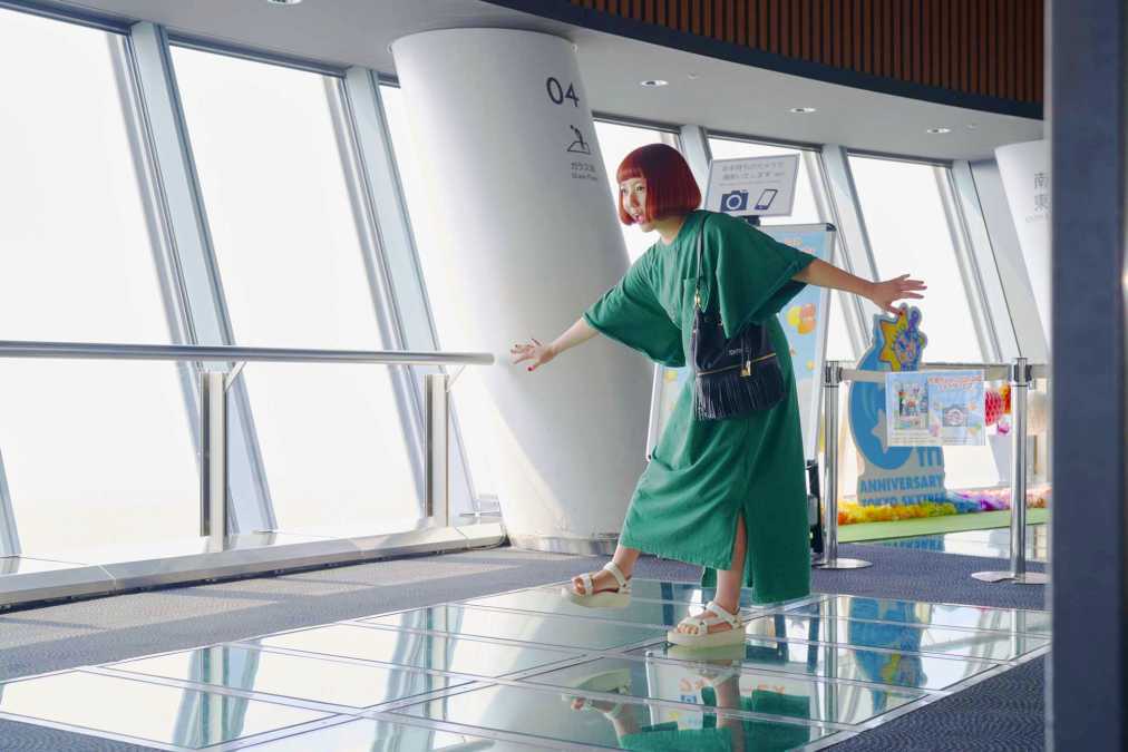 さっきは足元から見上げたスカイツリーを今度は上から!真下に広がる景色を楽しめる「ガラス床」はちょっぴり怖いけどぜひ乗って欲しい。カップルだったら吊り橋効果でキャッキャと距離が縮まるはずです。