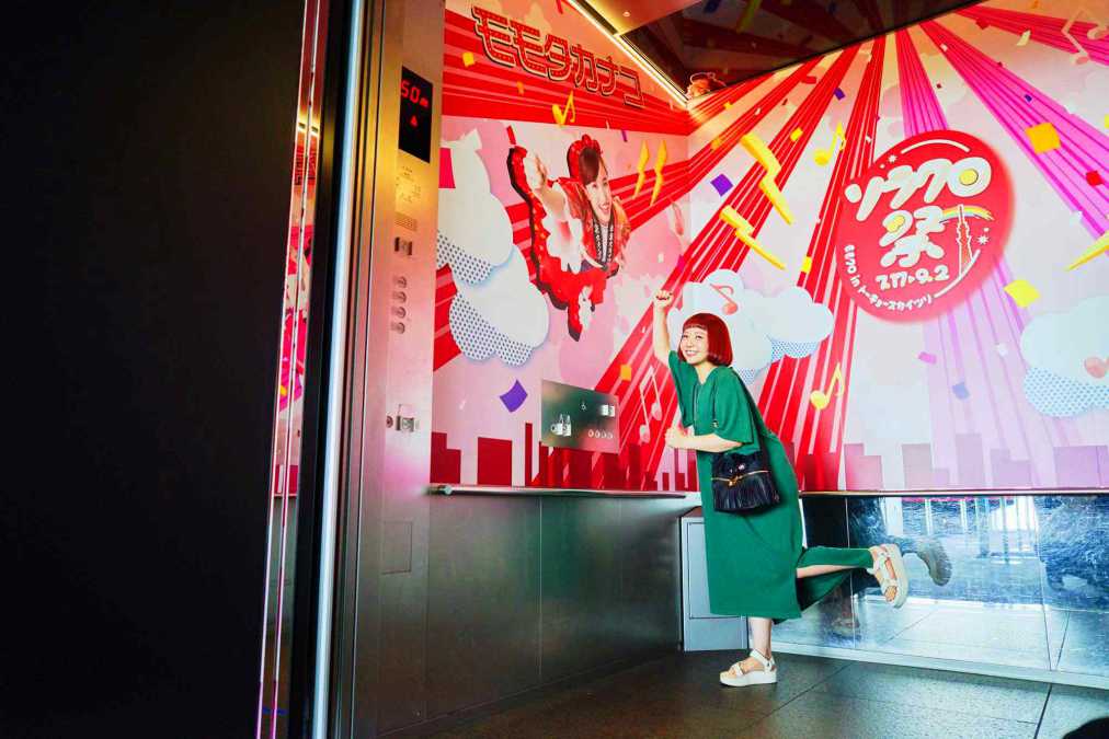 でも今回のソラクロ祭の会場は、なんとさらに100m上の「天望回廊」!ももクロメンバーがお出迎えしてくれるエレベーターに乗って早速レッツゴーです!