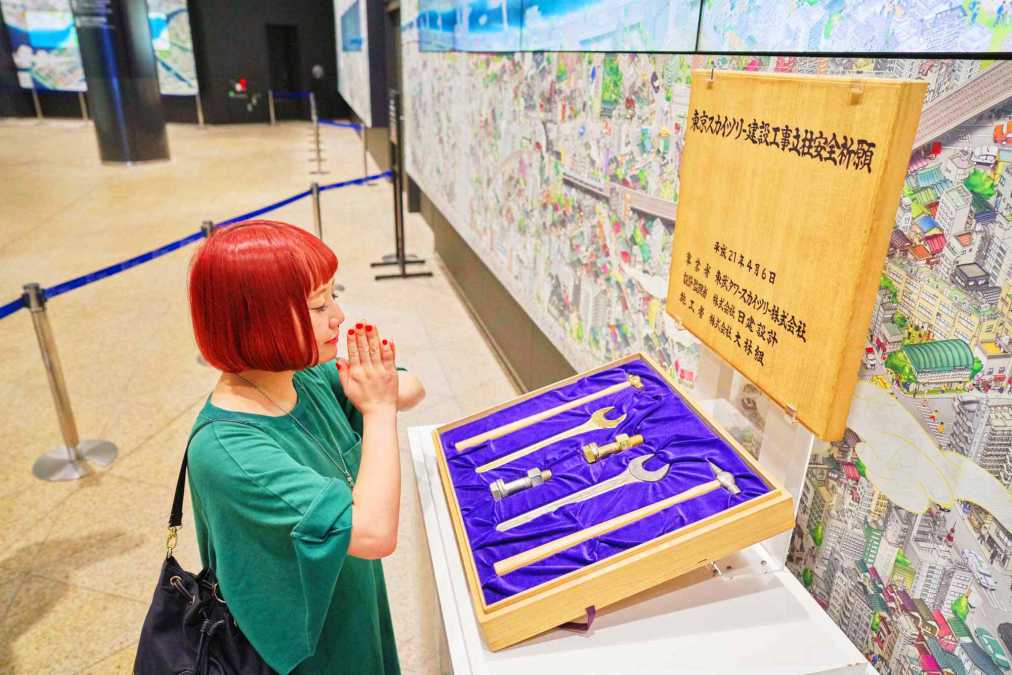 ツアーの最後には建設工事の安全祈願に使用されたという祭具も見れます。なんだかご利益がありそうなので、とりあえず拝んでおきました。朝8:20~となかなか早めの開催ですが、早起きする価値あり!展望台入場券を持っていれば無料で参加できるので、展望台に上る前に楽しみたい、夏限定の体験です。