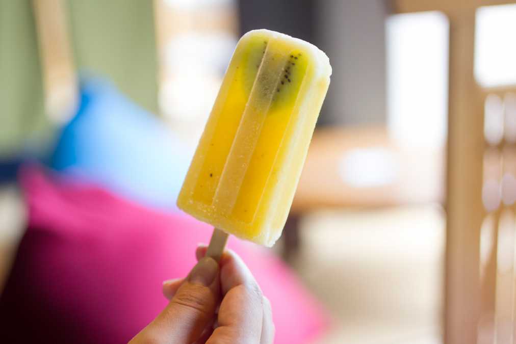 自家製アイスキャンディー(300円)のフレーバーは、パイナップルキウイと苺ヨーグルトの2種。湯上がりにひんやり冷たいアイスなんて、最高です!