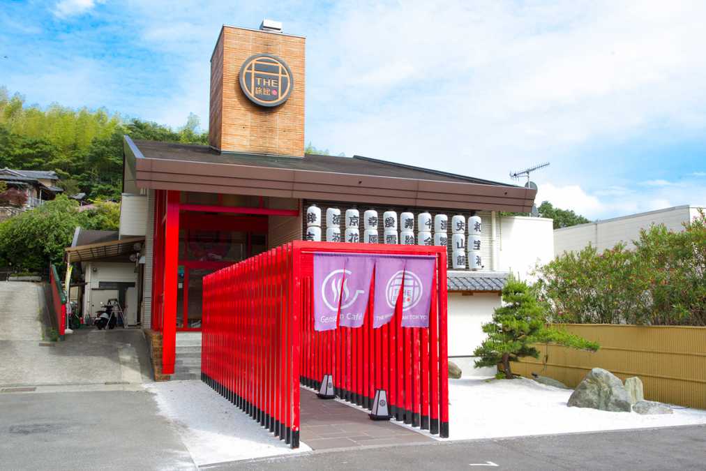 ゲンセンカフェがあるのは、都心から車でも電車でも約90分で行ける、湯河原温泉。2017年2月にオープンした、温泉街の高台にあるThe Ryokan Tokyo YUGAWARA(ザ リョカン トウキョウ ユガワラ)という旅館内です。神社の鳥居を思わせる朱色のゲートを通って中へ入りましょう。