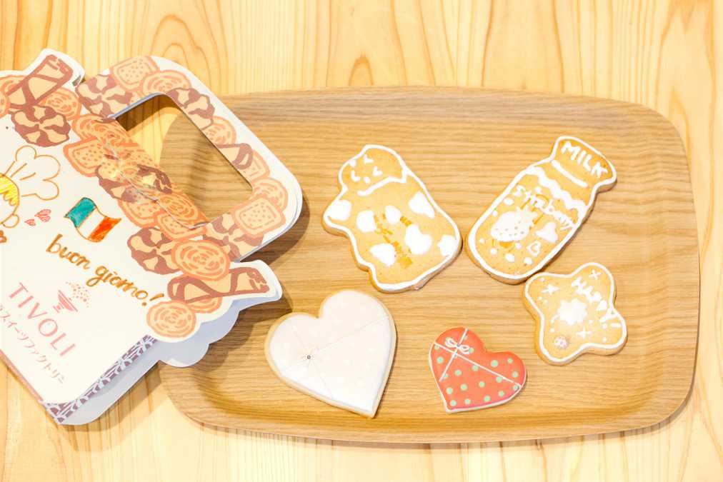 お菓子作り体験(45分900円、月・金曜11時~、土・日曜・祝日11時~、13時30分~、15時~)もできます。ちぼりのクッキー4枚にシュガーペンでお絵かきして、かわいいボックスに入れてお持ち帰り。1カ月前~前日までの電話予約制で、土・日曜・祝日は混み合うので、早めの予約がベターです。