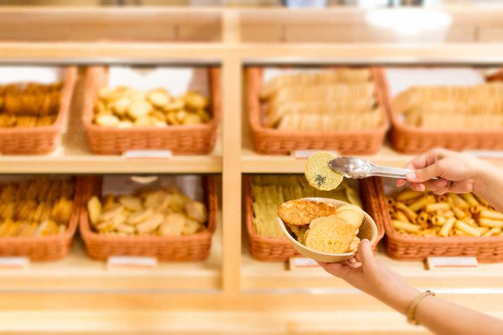 ショップには「赤い帽子」や「ちをり」など、ちぼりブランドの商品が並び、試食ができるものもたくさん。工場直売ならではのアウトレット品もあり、正規の商品規格には満たなかったラスクやパイ、ロールクッキーなどが1袋540円で買えちゃいます。