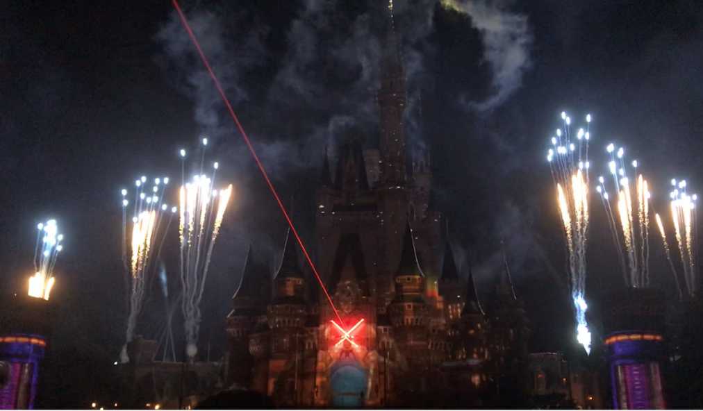 「スターツアーズ:ザ・アドベンチャーズ・コンティニュー」のシーンでは、デススターやミレニアム・ファルコン号、ライトセイバーの投影など、映画「スターウォーズ」ファンも喜びそうな場面もシンデレラ城に投影されます。