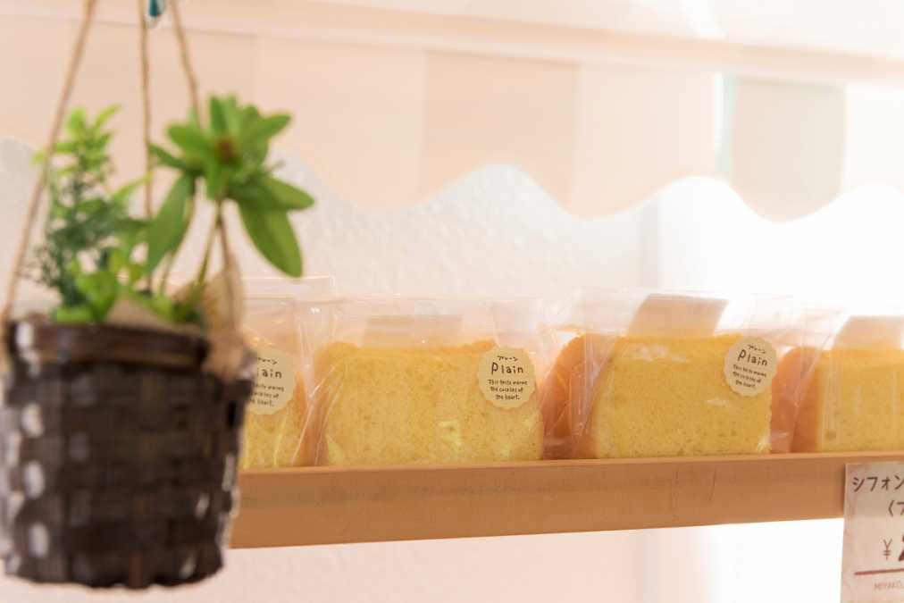 店内には他にも、たくさんのスイーツが並んでいます。中でも人気があるのが、シフォンケーキ(250円)です。取材中にも、ホール(1080円)を2つも買っていく地元の方が!看板商品のゆいプリン(162円)も、もちろんお持ち帰りできます。