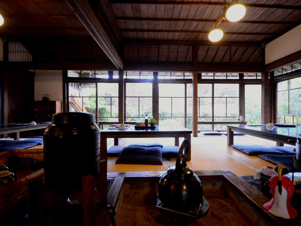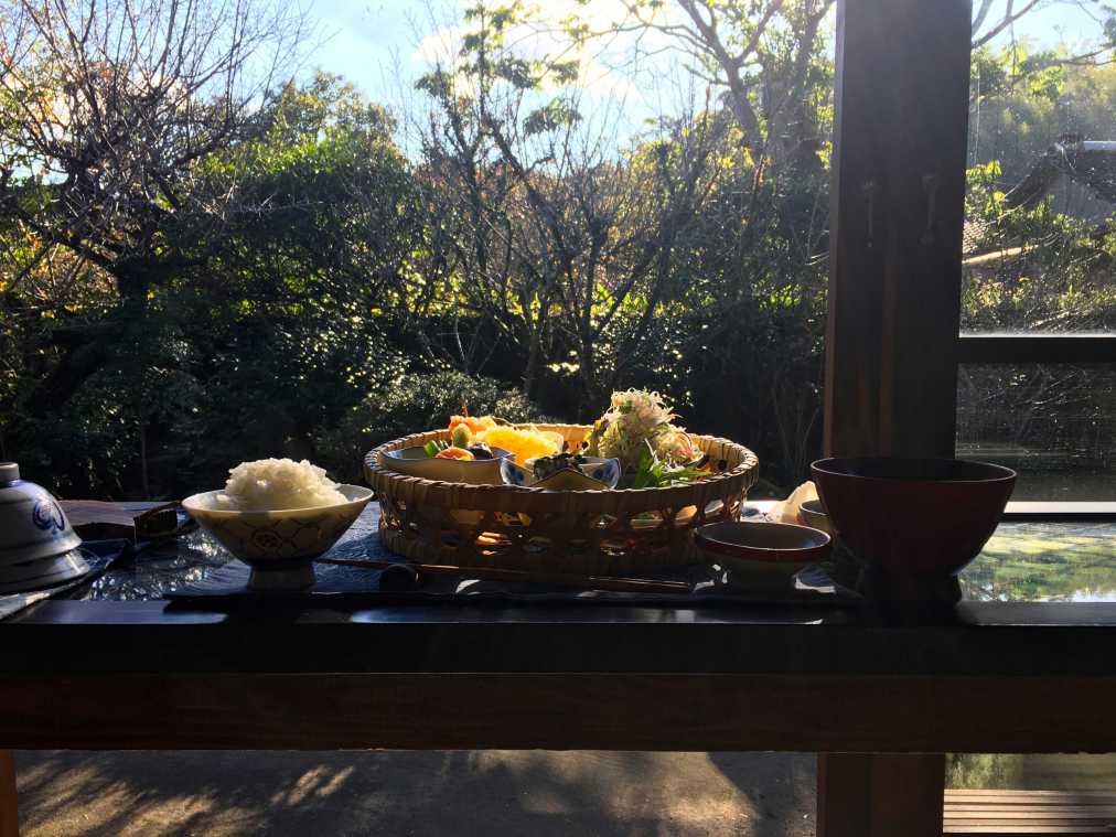 広々とした店内は、片方では庭をのぞみ、反対からは海を眺めることができます。どちらも捨てがたいのですが、オススメは庭を眺める縁側席。やわらかく差し込む日差しの中でいただく食事はたまらないものがあります。