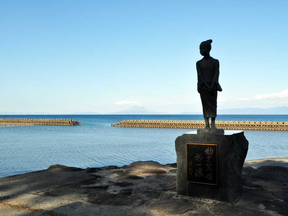 歩いてすぐの場所には、鹿児島湾(錦江湾)を望む海岸、そこには幼少期の篤姫の姿を象った「於一像」があります。