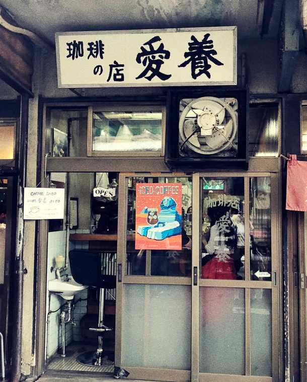 朝7時、街が目覚め始めるころですが、築地市場内ではすでに寿司屋の前に観光客が長蛇の列をなしています。その隣にそっと店を構えているのが、喫茶店「愛養」。昭和へタイムスリップしたような懐かしさを感じるたたずまいに、カメラのシャッターを切る人もちらほら見えます。