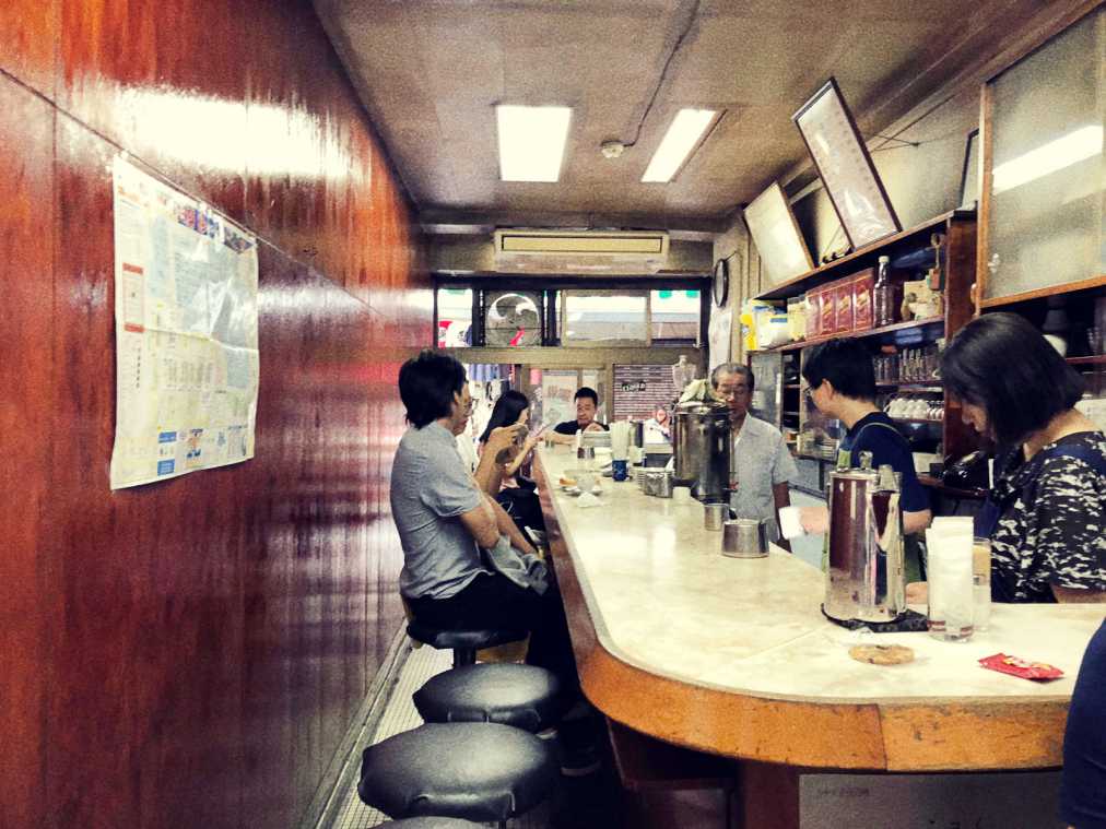 扉を開けてみると、長いカウンターとその奥にテーブル席が2つ。お客さんと店員さんが楽しそうに談笑しながら、カウンター越しにトーストやコーヒーが出される様子は、喫茶店というよりもバーのよう。築地で働く人々が、仕事の合間にお腹を満たしながら会話を交わして仕事に戻っていく、そんな風に築地をずっと見守ってきた歴史ある店でもあるのです。