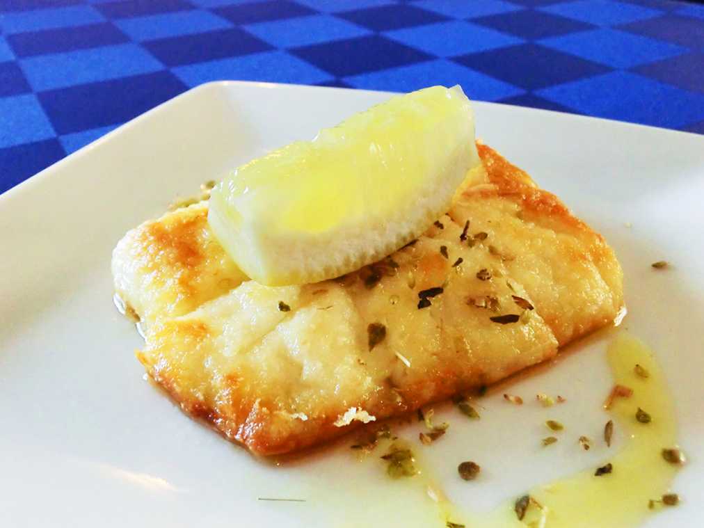 ランチメニューには入っていませんが、「SPYRO'S」に行ったら、ぜひ食べておきたいギリシャの前菜「サガナキ」(750円)。ヤギや羊のミルクを練って作るキプロスの名物「ハミルチーズ」を焼いたもので、モキュモキュした不思議な食感!塩味がきいていて白ワインによく合いますよ。
