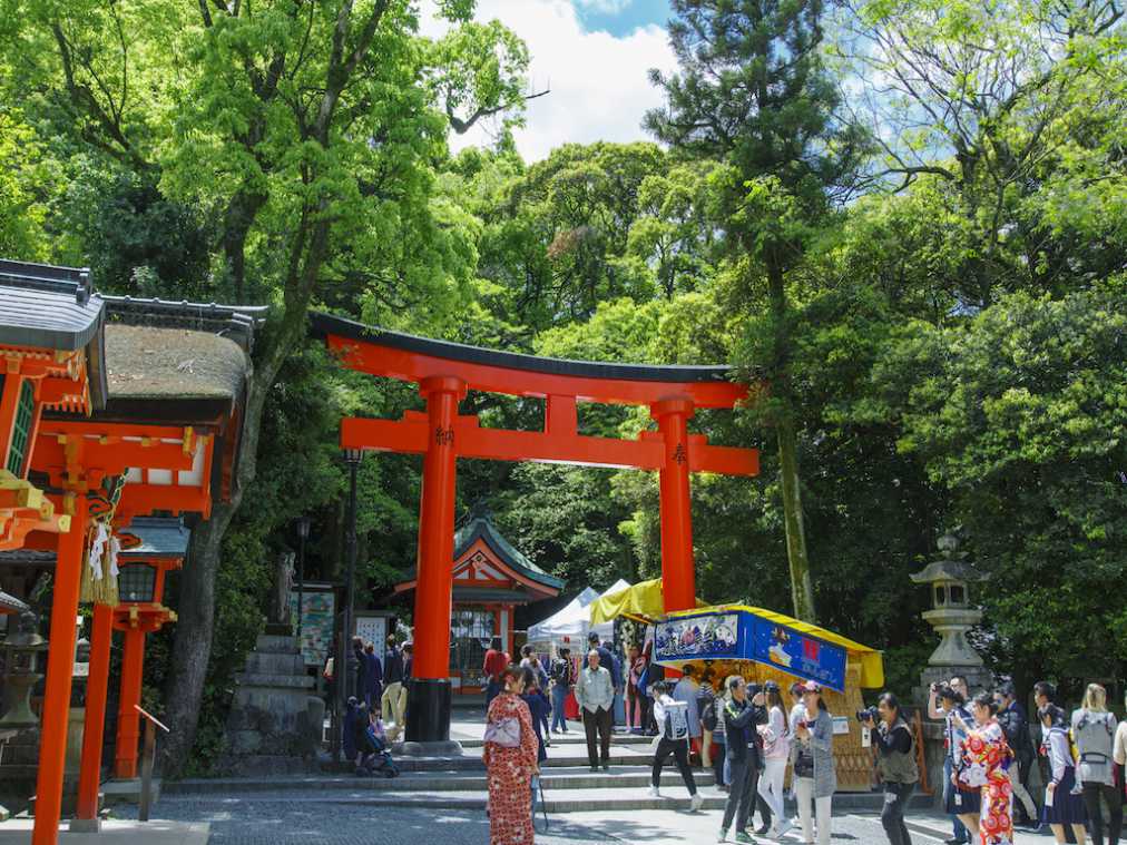 五穀豊穣や商売繁盛のご利益で知られる「伏見稲荷大社」は、全国に約3万社ある稲荷神社の総本宮。境内の広さは、なんと稲荷山全域の26万坪!艶やかな朱塗りの鳥居と、緑豊かな山の木々が調和する姿は最高の美しさです。