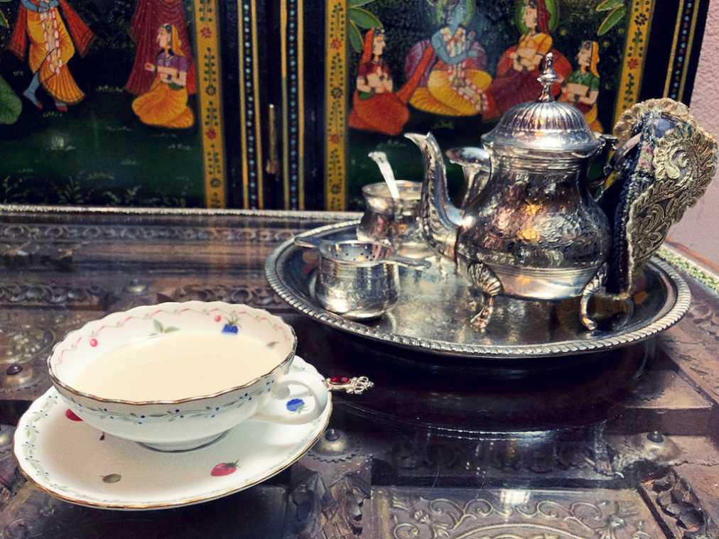 この「ティーセット」(750円)はオーダー時に10種類の茶葉が入った木箱を持ってきてくれ、それぞれの茶葉の説明をしてくれます。その中から選んだ茶葉を煮出してくれ、お好みでミルクをプラスしていただきます。