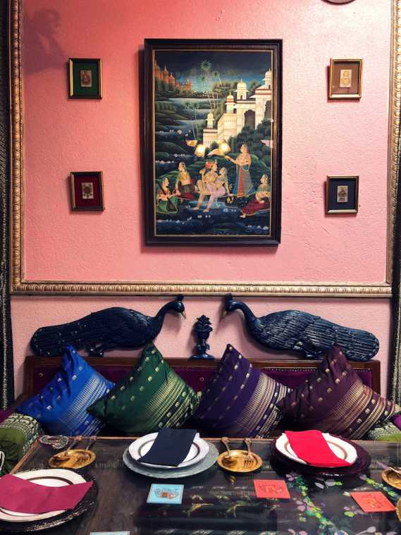 どの席もそれぞれに異なる装飾が施されていて、どの席もフォトジェニック!店内はインドのマハラジャをイメージしており、置かれている家具もインドのアンティークのものなんだとか。